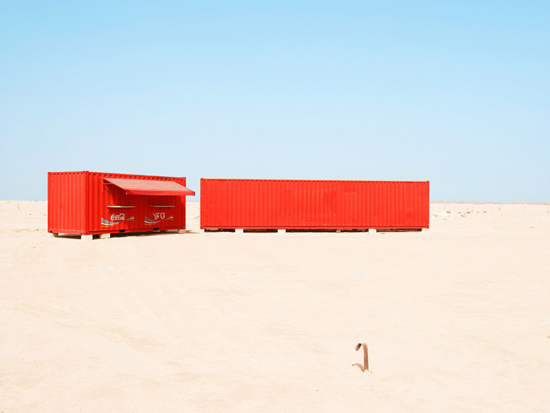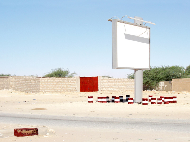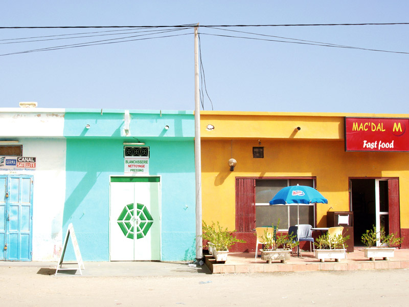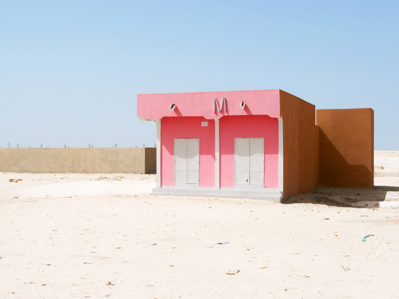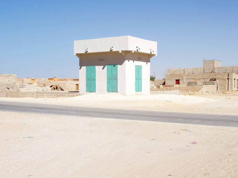 Nouakchott opus incertum (2004-2007) – Dans des paysages baignés de soleil, des couleurs émergent qui soulignent le caractère iconoclaste de bâtiments de la ville. A Nouakchott, jeune capitale sortie des dunes, le décor change souvent. Des zones de rêves poussent, futurs espaces possibles. Et si tout ceci n’était qu’un mirage…