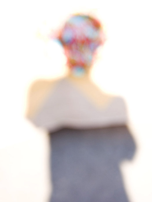 Still life (2008-2011) – Cette galerie de portraits s’appuie principalement sur deux gestes photographiques, le flou et la surexposition. L’absence de contour précis générée par des flous de mise au point accentue la perte de reconnaissance des éléments photographiés. Positionnés dans l’ombre des corps, ces objets n’existent plus pour leur fonction mais seulement pour les couleurs et la lumière qu’ils diffusent. De la nature morte au portrait – du référent à l’image – comment les appréhender ?