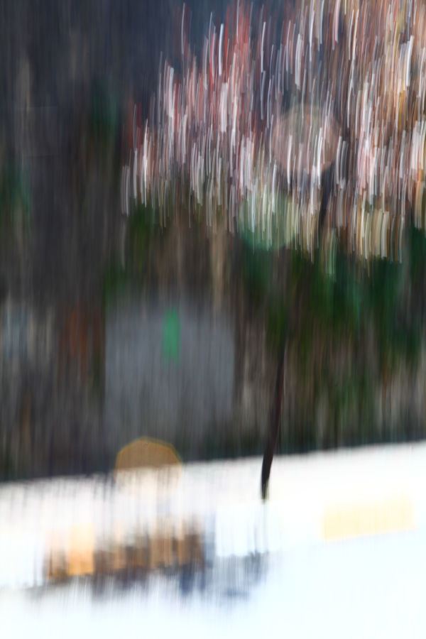 Üç (2013-2014) – Forme visuelle de prime abord difficilement prononçable, le mot Üç signifie trois en turc ; ces photographies ont été réalisées à Istanbul, lors d’une résidence avec les photographes Gilles Roudière et Tilby Vattard. Par des gestes secs, les couleurs apposées sur le référent se superposent et s’enchevêtrent. Bien que photographiques, ces images errent dans l’entre-deux de la figuration, dans la béance laissée ouverte de l’épaisseur du monde. Ni complètement présence, aucunement absence, elles offrent des formes de résistance.